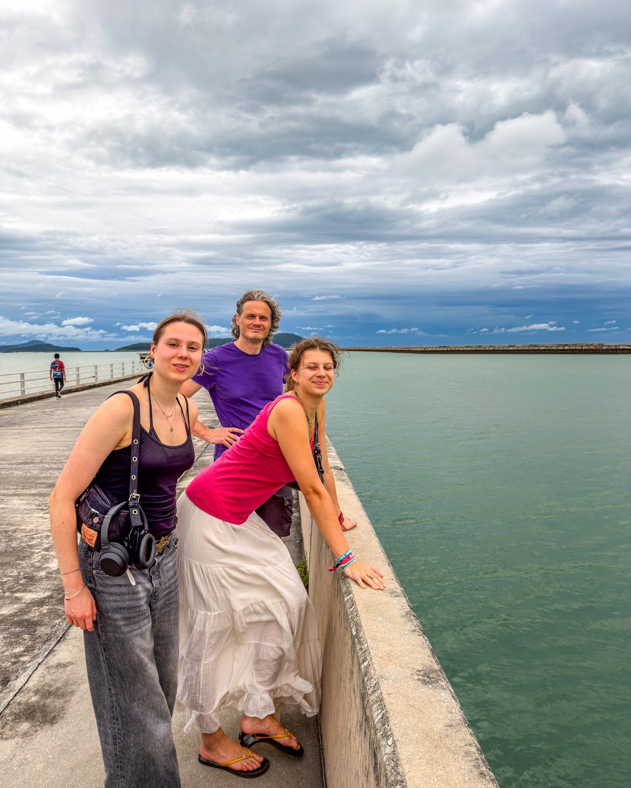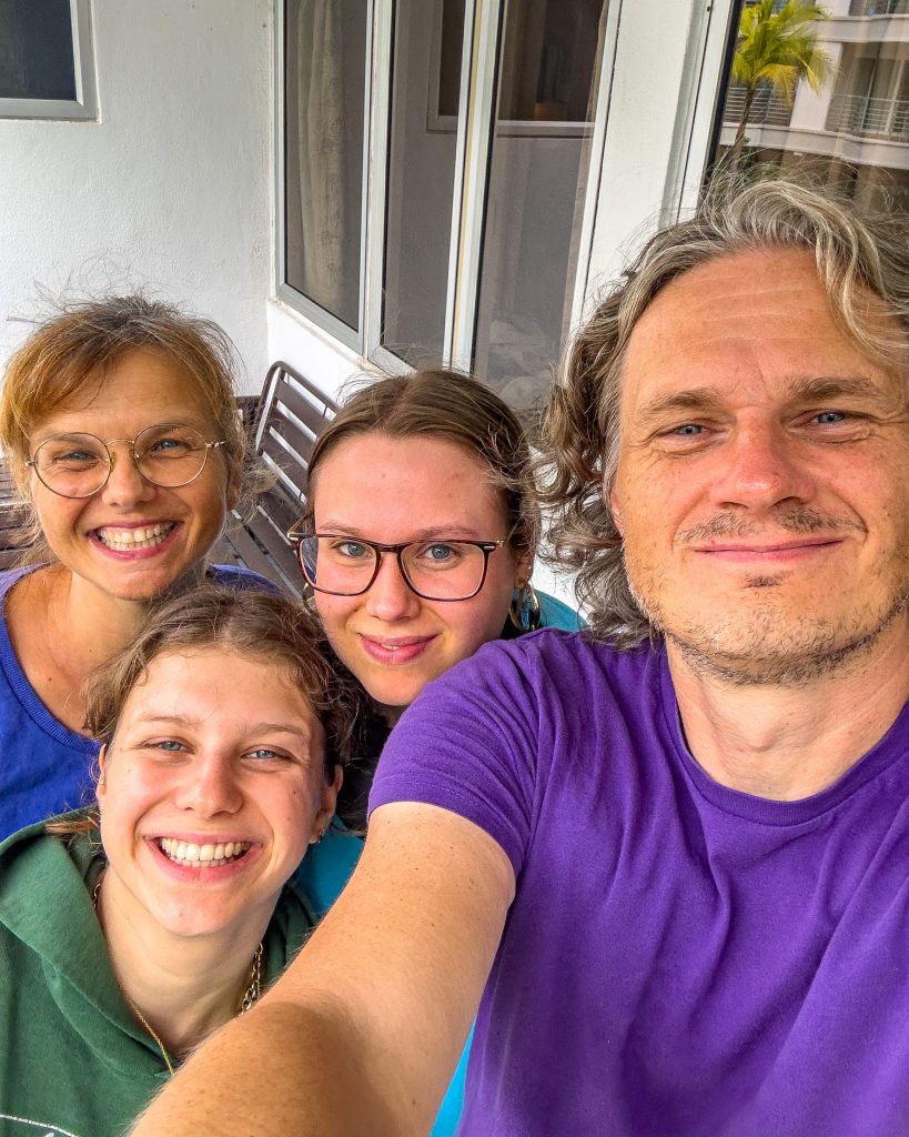 Langkawi war für uns aus vielerlei Gründen eine echt schöne Erfahrung, mit ein paar Einschränkungen. Wir haben uns dort mit Pauline und Skadi getroffen und waren wirklich etwas aufgeregt, weil wir unsere Tochter ja seit 3 Monaten nicht gesehen haben. Wir haben beide (noch bei strahlendstem Sonnenschein) am Flughafen überrascht und es war so schön, sie endlich in die Arme schließen zu können. Ja, es flossen auch Tränen. Verrückt, aber in diesem Moment fühlten wir uns alle ein wenig zu Hause. Ich möchte gar nicht daran denken wie es für uns ist, wenn wir dann noch Fritzi in einem halben Jahr endlich wiedersehen. Man verdrängt all das, wenn man unterwegs ist. Es gelingt auch sehr gut, weil man ja so unglaublich viel Interessantes, Schönes und Neues erlebt, aber erst in solchen Momenten wird einem bewusst, wie intensiv das Heimweh sein kann. Es ist wie eine riesige Welle Liebeskummer…