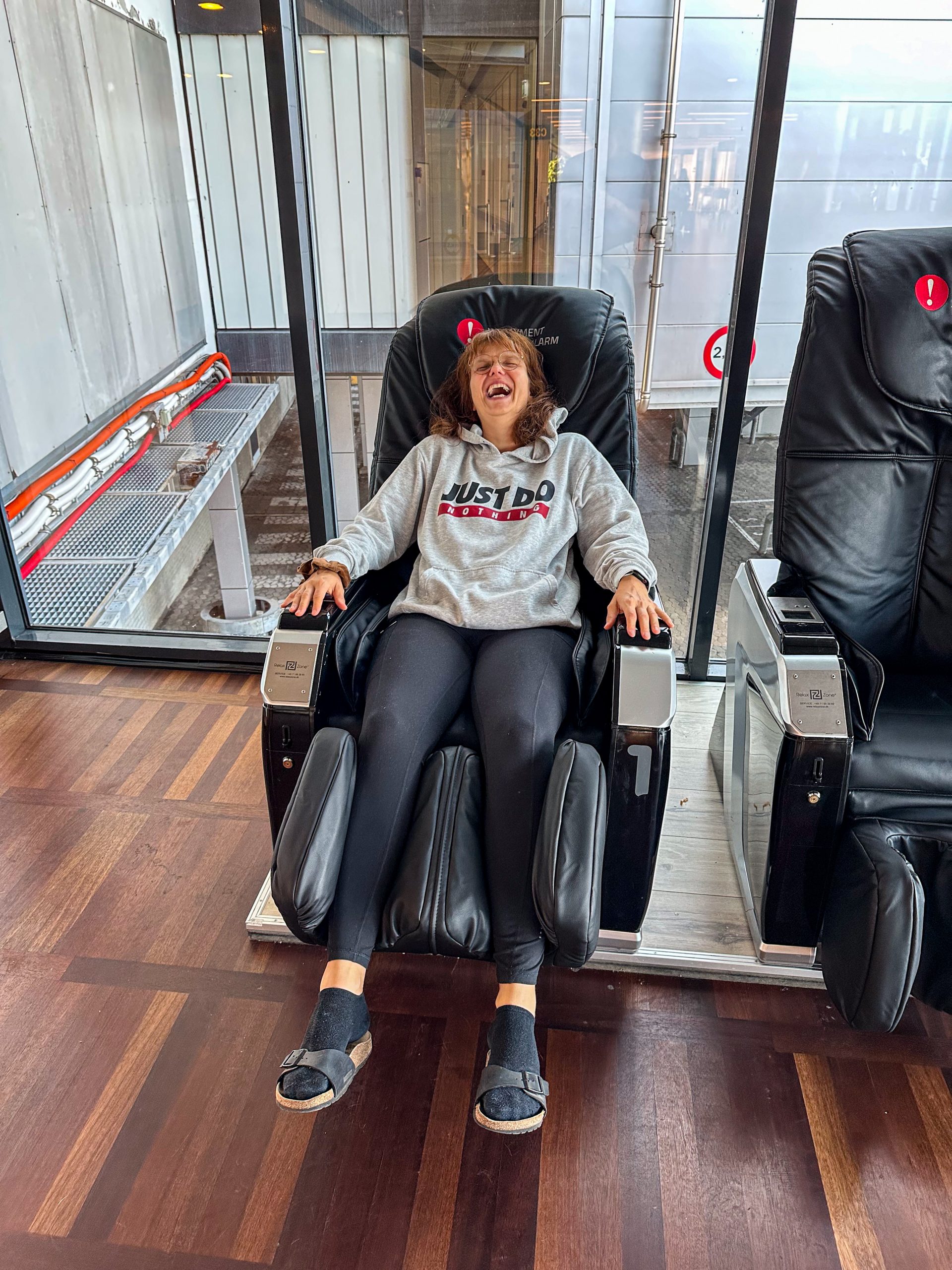 Unerwartet voll war der Flughafen für einen Montagmorgen und dennoch haben wir zufällig Fritzis liebe Freundin Hanna getroffen, die sich gerade für ein Auslandsjahr von ihrer Familie verabschiedete. Ach war es schön, sie noch einmal kurz zu sehen und zu drücken! Es war irgendwie noch ein Puzzleteilchen aus Fritzis Leben und mit der gleichen Vorfreude wie unsere Lütte, nur dass wir diesmal ebenso aufgeregt waren. Kurze Zeit später starteten wir auch schon mit einer wirklich kleinen Maschine nach Kopenhagen. Wir saßen ganz vorn in der ersten Reihe und die Koffer wurden vor (!) uns eingeladen. Wo bitte saß der Pilot? Irgendwie war mir das nicht geheuer und mit all der Aufregung drumherum nahm ich dann doch eine 0,5er Lorazepam, die ja eigentlich Marcus verschrieben worden war 😏. Ob es nun an dem ruhigen Flug oder den Drogen lag, keine Ahnung. Ich war jedenfalls mega entspannt und konnte nur noch verträumt lächeln: Endlich heben wir ab in ein Jahr neuer Erlebnisse mit der Zeit, diese auch bewusst wahrnehmen und genießen zu können. Ich liebe meinen Job und daher mag dies jetzt etwas merkwürdig klingen, aber es wird einfach auch 1 Jahr ohne „Frau Schwarz!“ seitens der Schulkinder und Eltern sein, 1 Jahr für uns ohne Deadlines, Konferenzen, Meetings, Protokolle oder Formulare und, sorry meine liebsten Mäuse, auch 1 Jahr ohne „Räum bitte deinen Kram wieder weg!“, „Wer geht mit dem Hund?“ oder Schockzustände, sobald gewisse Zimmer im eigenen Haus betreten werden, schlaflose Nächte, weil das Partygirl noch nicht wieder angekommen ist bzw. die anderen Partymäuse alle bei uns übernachten. Wir lieben grundsätzlich auch oder ganz besonders unser Familienleben und genießen auch genau solche Situationen, aber noch mehr können wir diese belächeln und als temporäres Chaos mit Teenagern wegatmen 🧘, wenn wir auch dazu etwas Abstand haben dürfen…